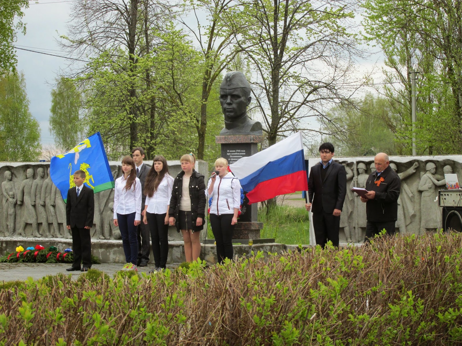 Затем дети возложили цветы на мемориальные плиты.